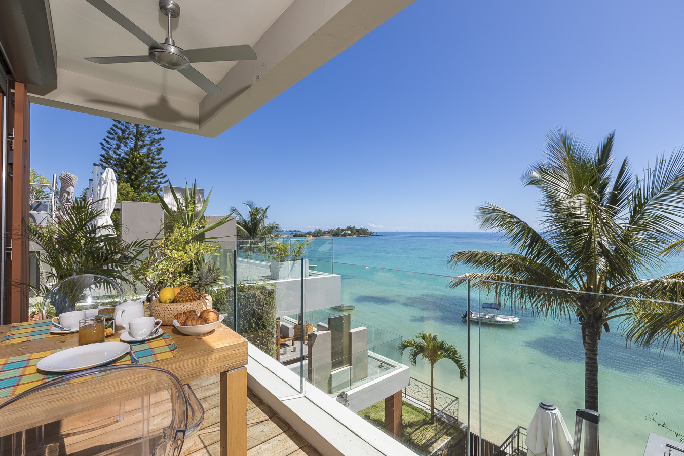 Enjoy a relaxing holidays in Mauritius in your own contemporary waterfront apartment on 2nd floor – Suitable for 4 persons.
