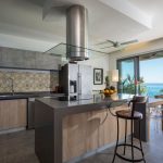 The living room, furnished and tastefully decorated, consists of a comfortable living room with television, a small dining table and an open kitchen. Open the large sliding doors and enjoy the terrace and the breathtaking view over the Indian Ocean. Ideal for relaxing on a warm and sunny day or a drink in the evening with you loved ones.