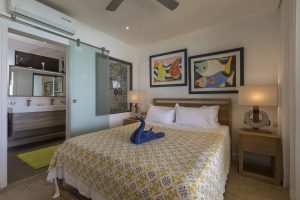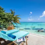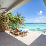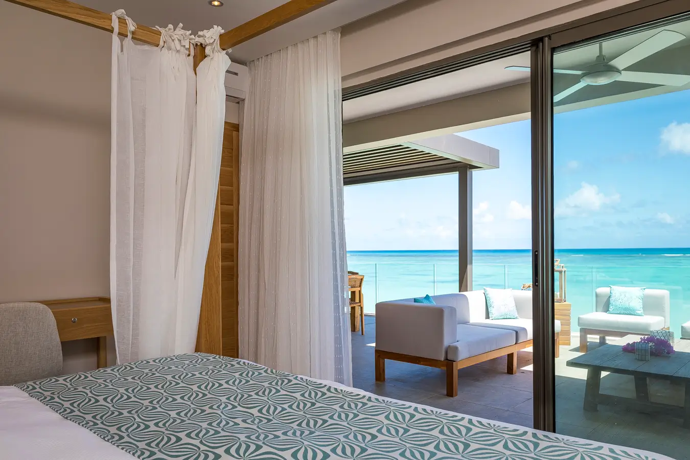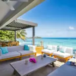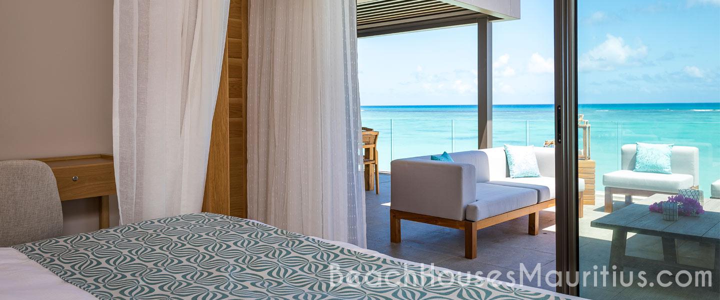 Il est à la fois pieds dans l’eau avec son accès direct à la plage (une de nos plages préférées : petite & intimiste, avec vue sur le Coin de Mire) et offre une vue à couper le souffle sur le lagon grâce à sa situation au 1er étage.