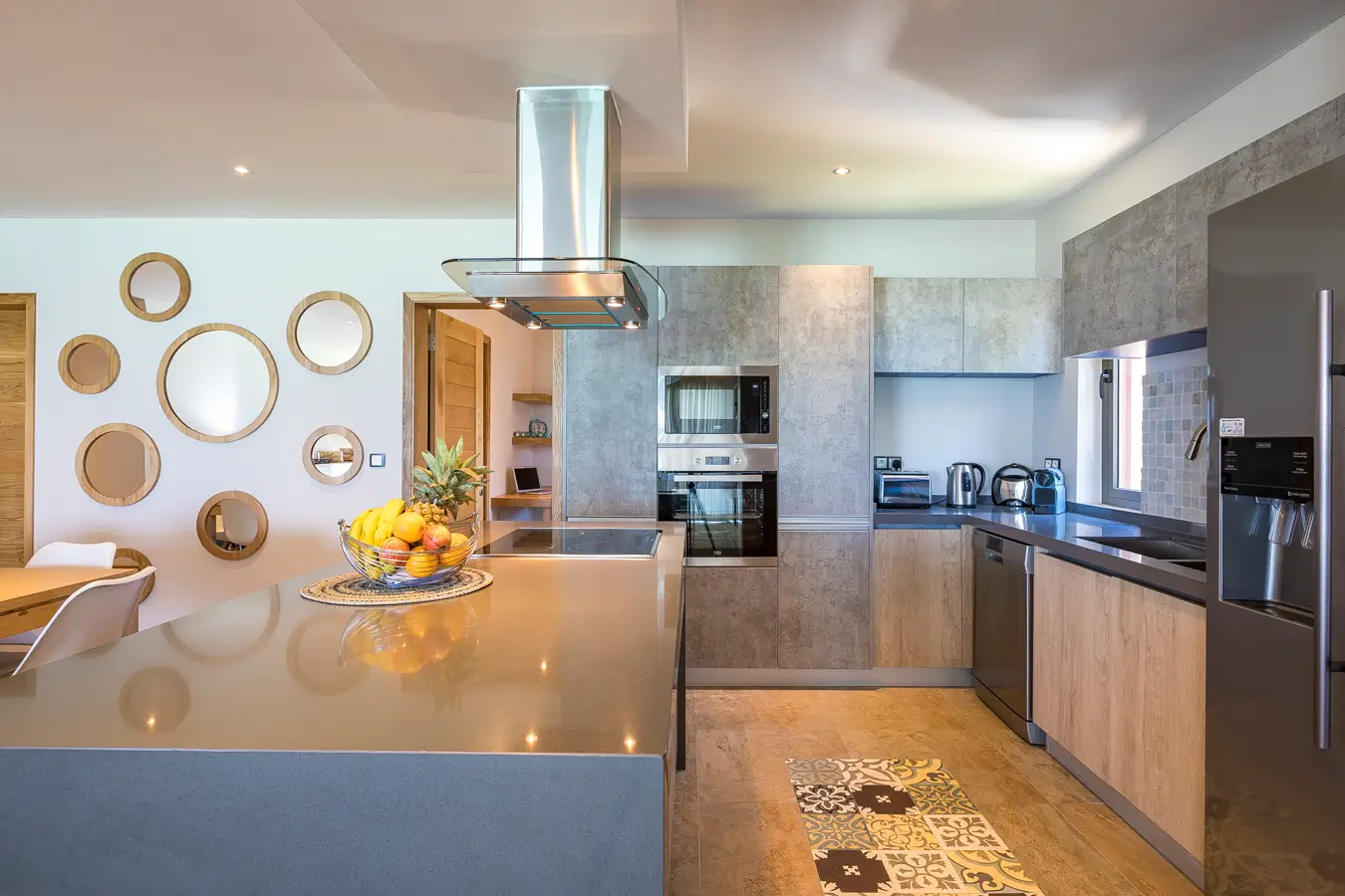 The open kitchen is very well equipped and your housekeeper will make sure you do not have to bother about cleaning (included in the price). She can also cook on request (for a small additional fee). That is what we call holidays!