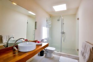 Nevertheless it is just a pleasant 10-15 minutes’ walk to a few shops and a bakery. A rental car or taxi is recommended at night if you would like to go out – many excellent restaurants are close by.