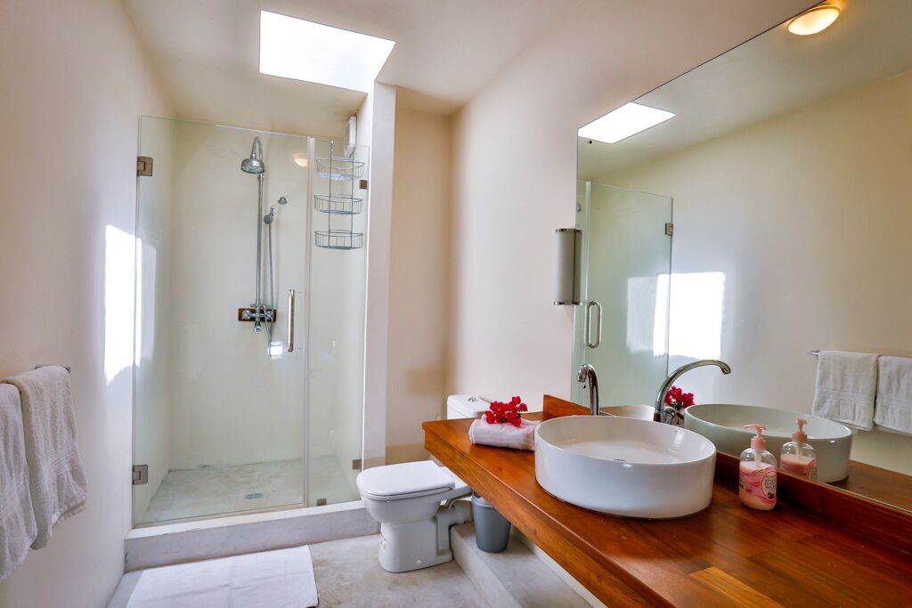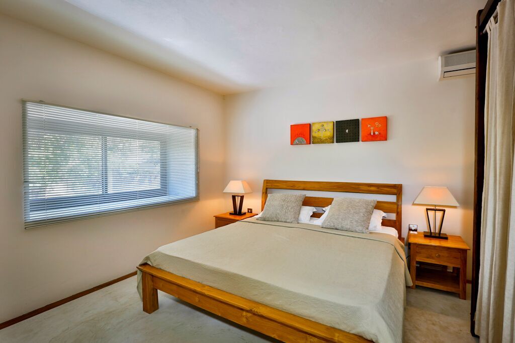 Slide open the panorama window in your master bedroom and listen to the sound of the sea and the birds in your tropical garden. The second bedroom is located at the back with garden view and private parking.