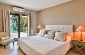 The first floor – the 3 other bedrooms en-suite are located upstairs. All bedrooms lead to the wooden terrace with a spectacular sea view. Slide open the terrace doors and sleep with the sound of the sea and wake up with the very same.
