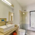 The ground floor consists in a modern living and dining area, an open fully equipped kitchen, 2 bedrooms and 2 bathrooms.