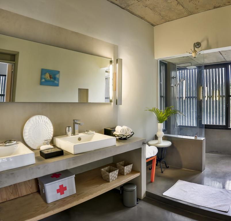 The terrace with an exceptional view and modern comfy outdoor furniture will be your favorite place in the house ! Just imagine yourself under the tropical sky with your favorite drink in one hand and your beloved in the other, watching the magical stars in paradise.