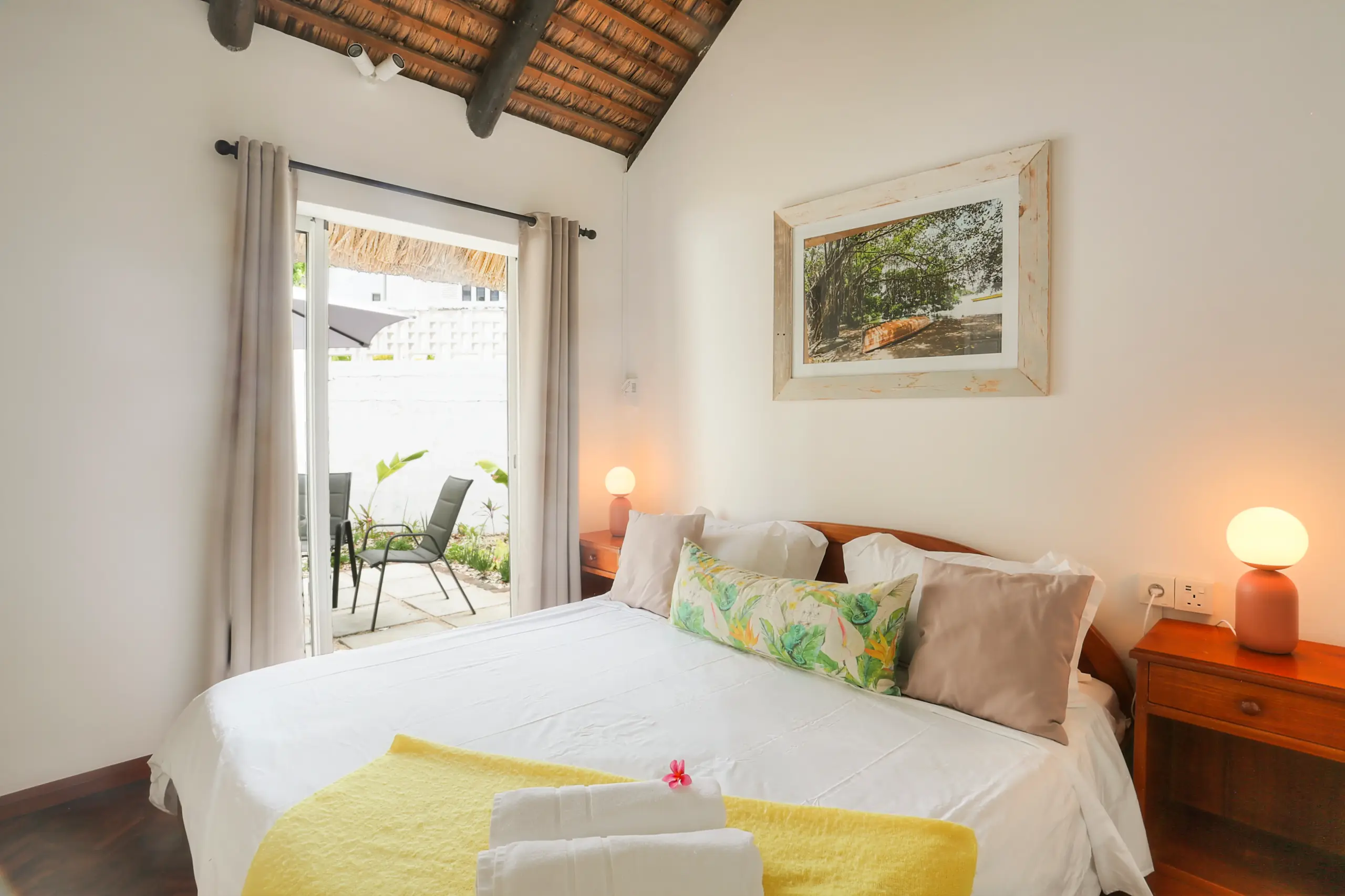 The “tropical” style of the villa is most charming, with a thatched room and attractive exposed beams. For an even more relaxed dream holiday, Marie-Claude and Priscille take care of the housework and ironing. The beds are made and the kitchen tidied up. Should you want to taste some Mauritian dishes, you can make arrangements directly with them at a small additional fee.
