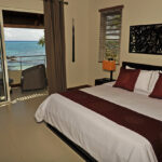 Die 2 Schlafzimmer im ersten Stock bieten einen atemberaubenden Blick auf den Ozean. Der Wohnbereich ist geräumig und geschmackvoll eingerichtet.
