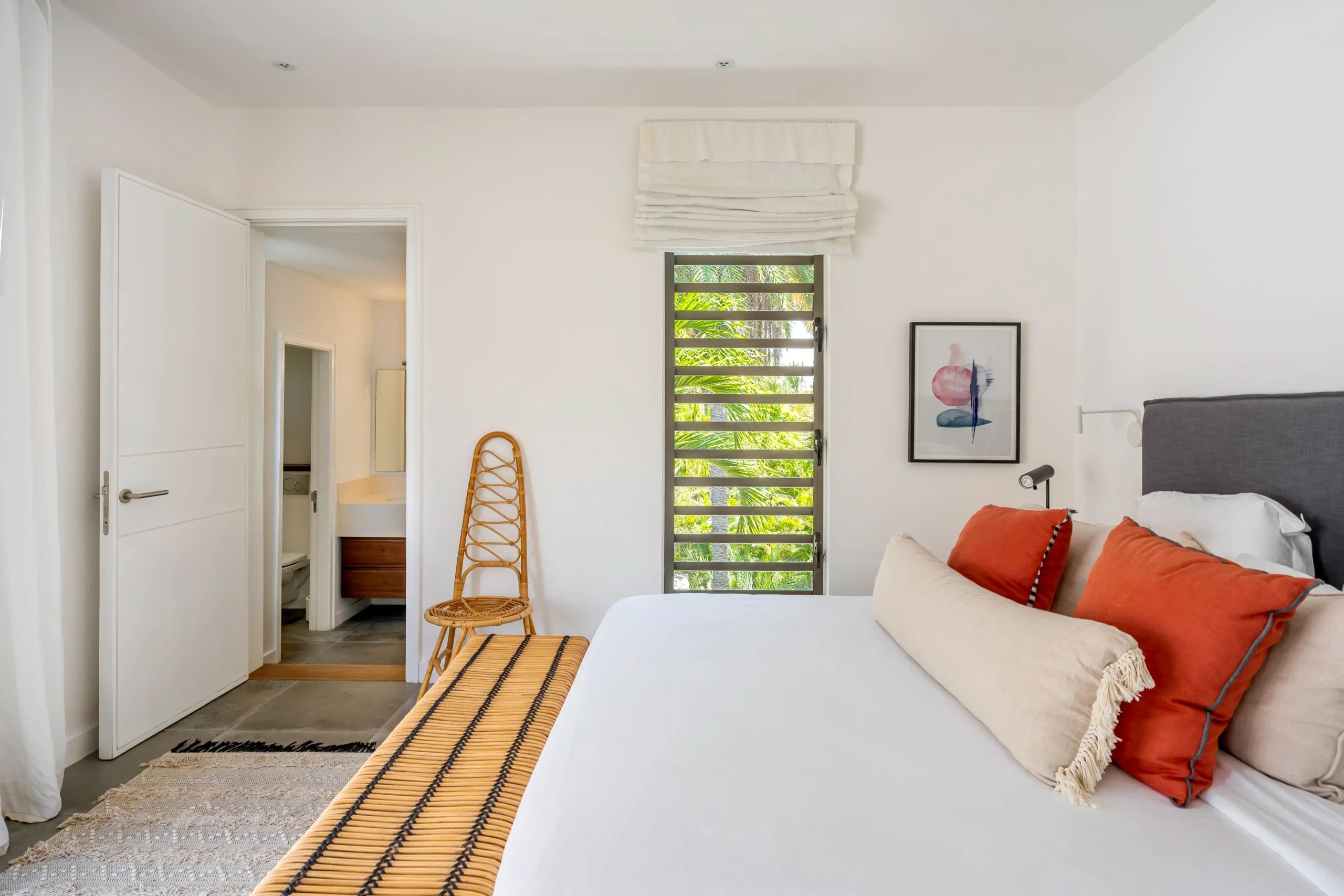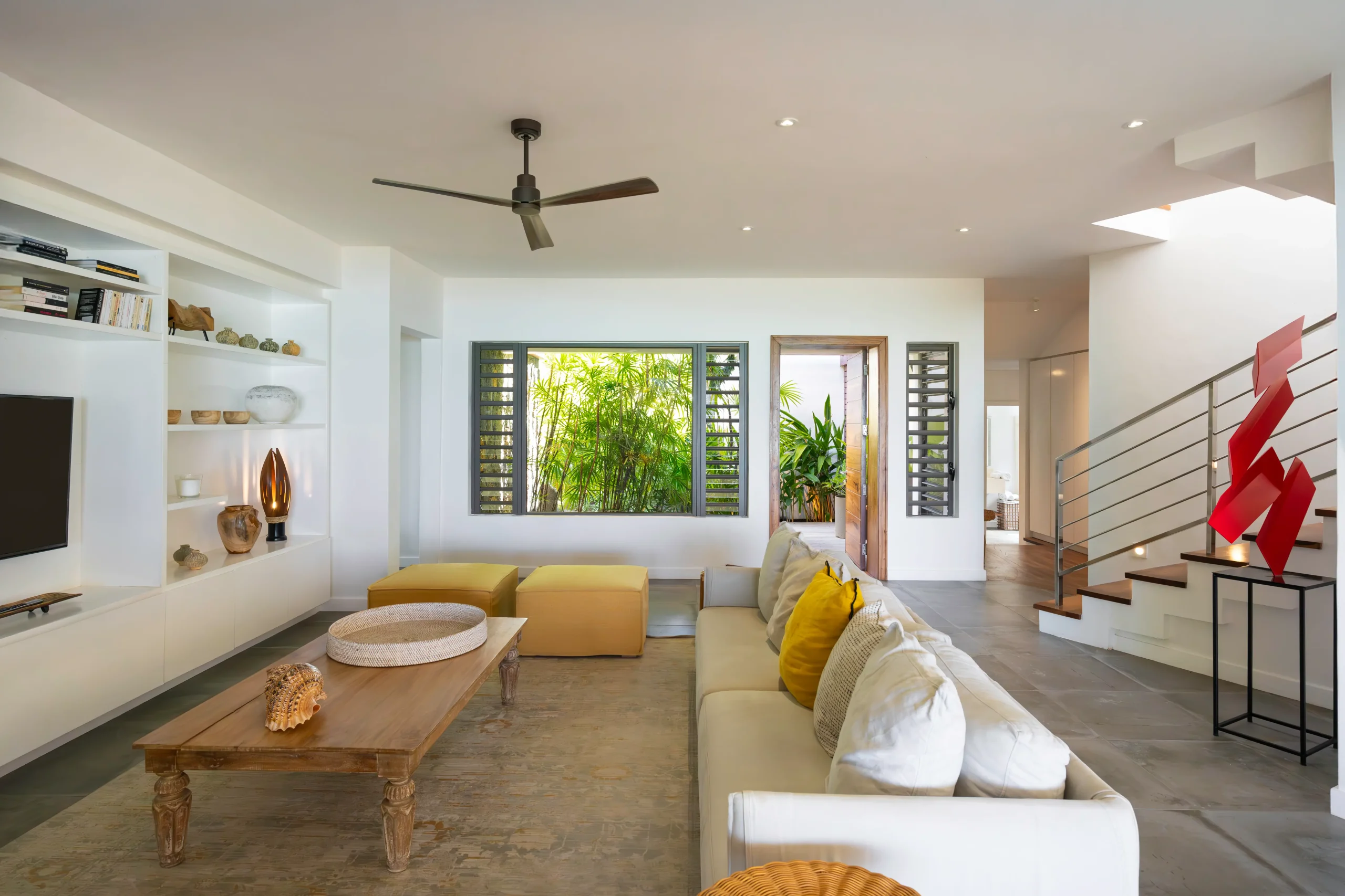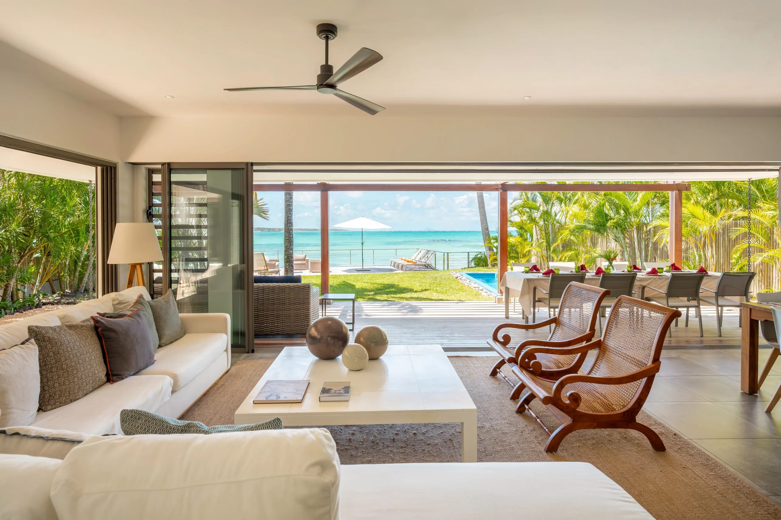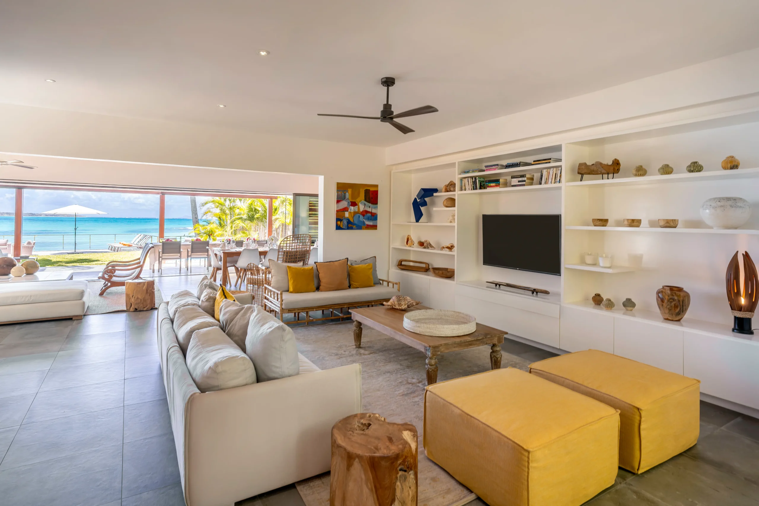 Die Dekoration verbindet moderne Eleganz mit entspannter Inselatmosphäre. Die Villa ist mit viel Liebe zum Detail eingerichtet – mit ausgewählten Stücken aus verschiedenen Teilen der Welt.
