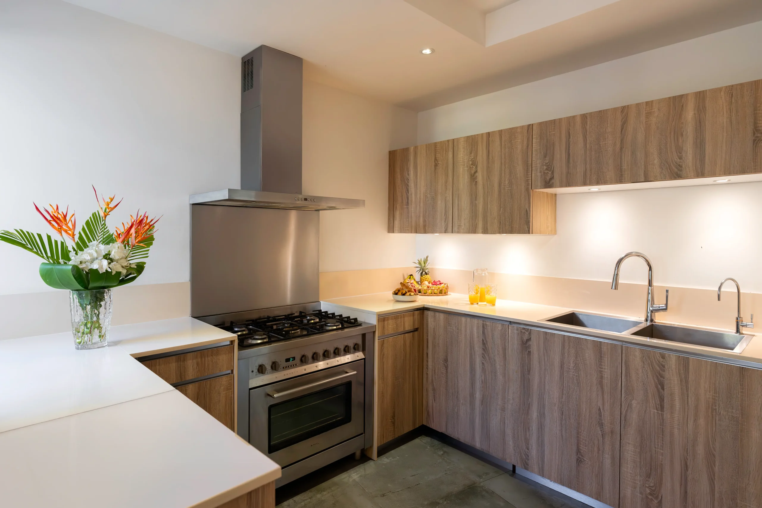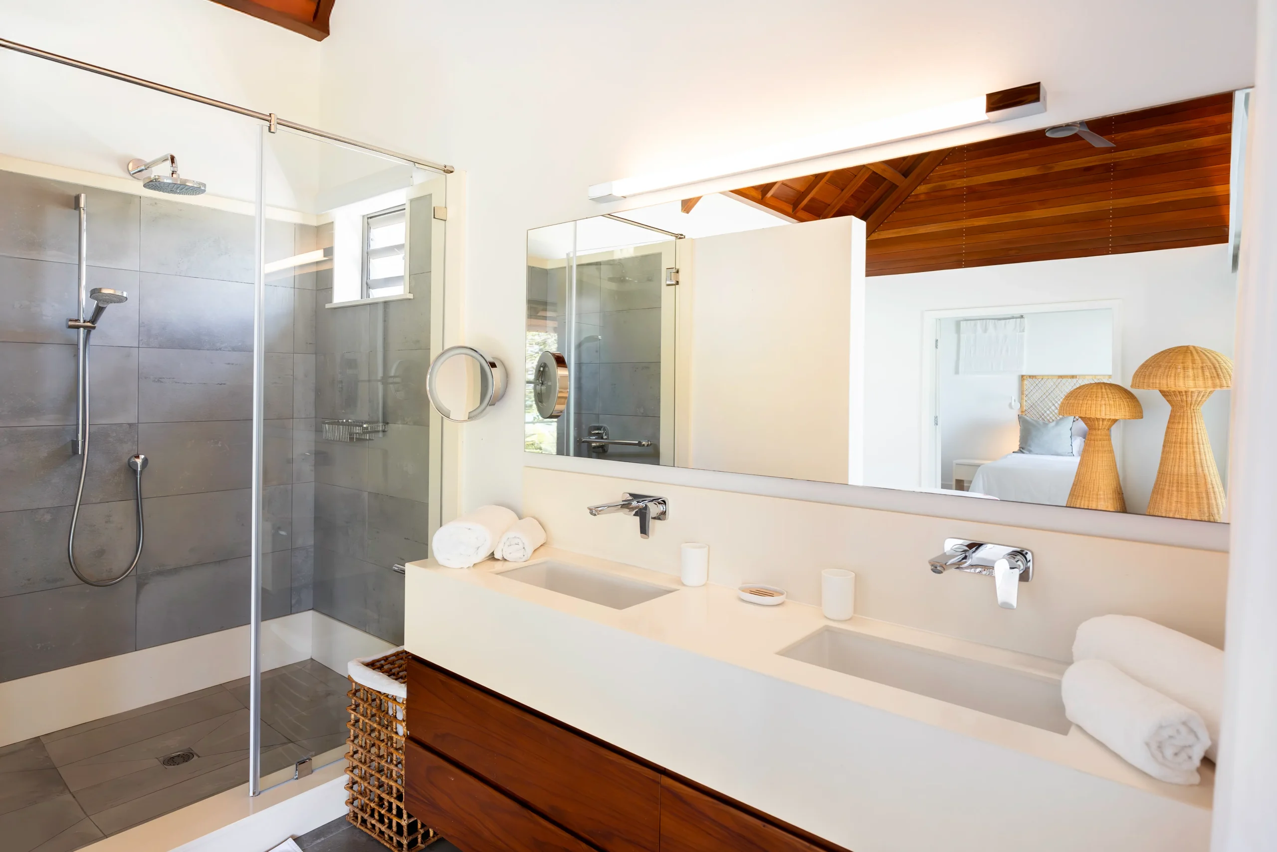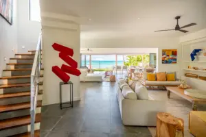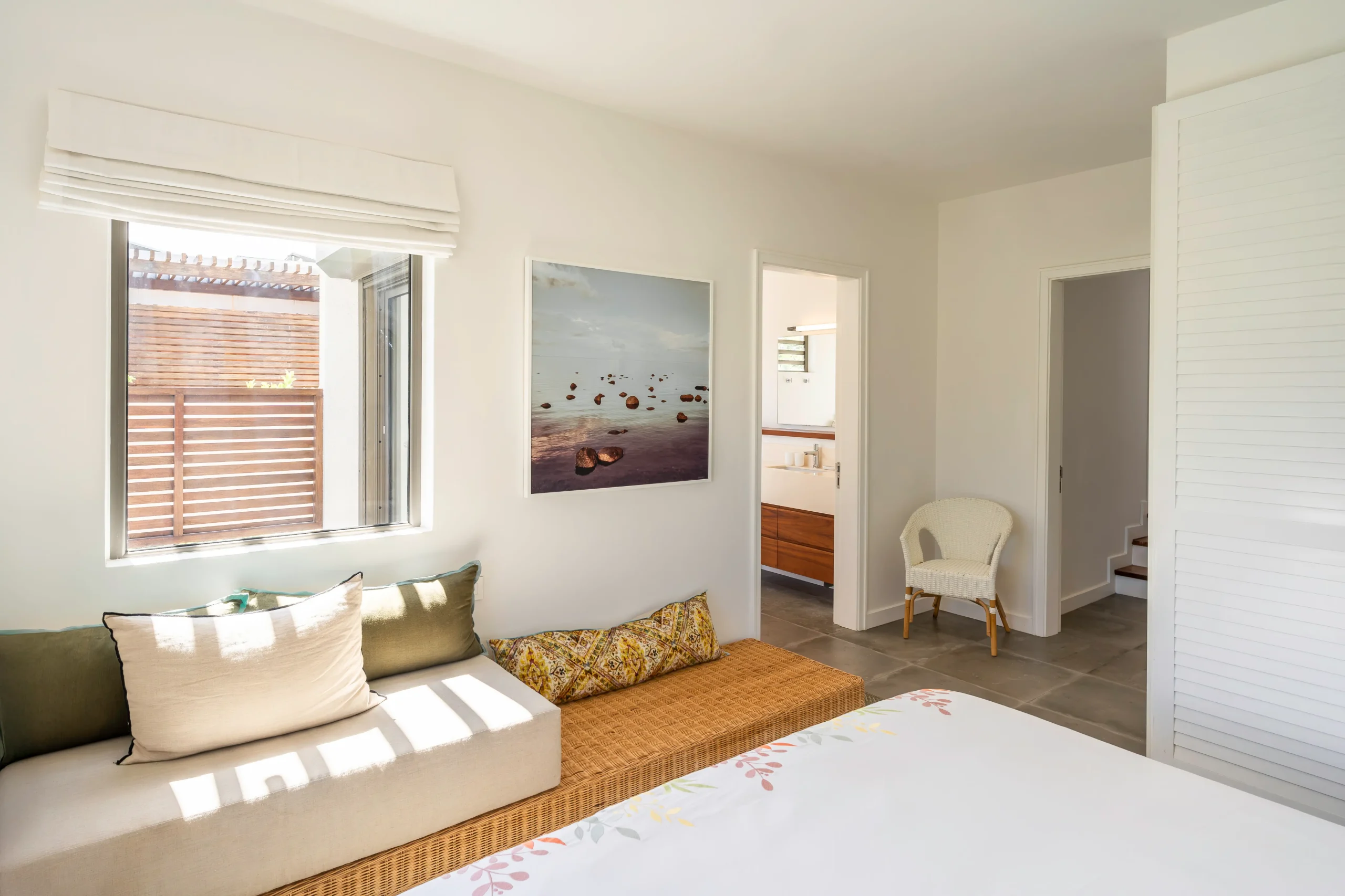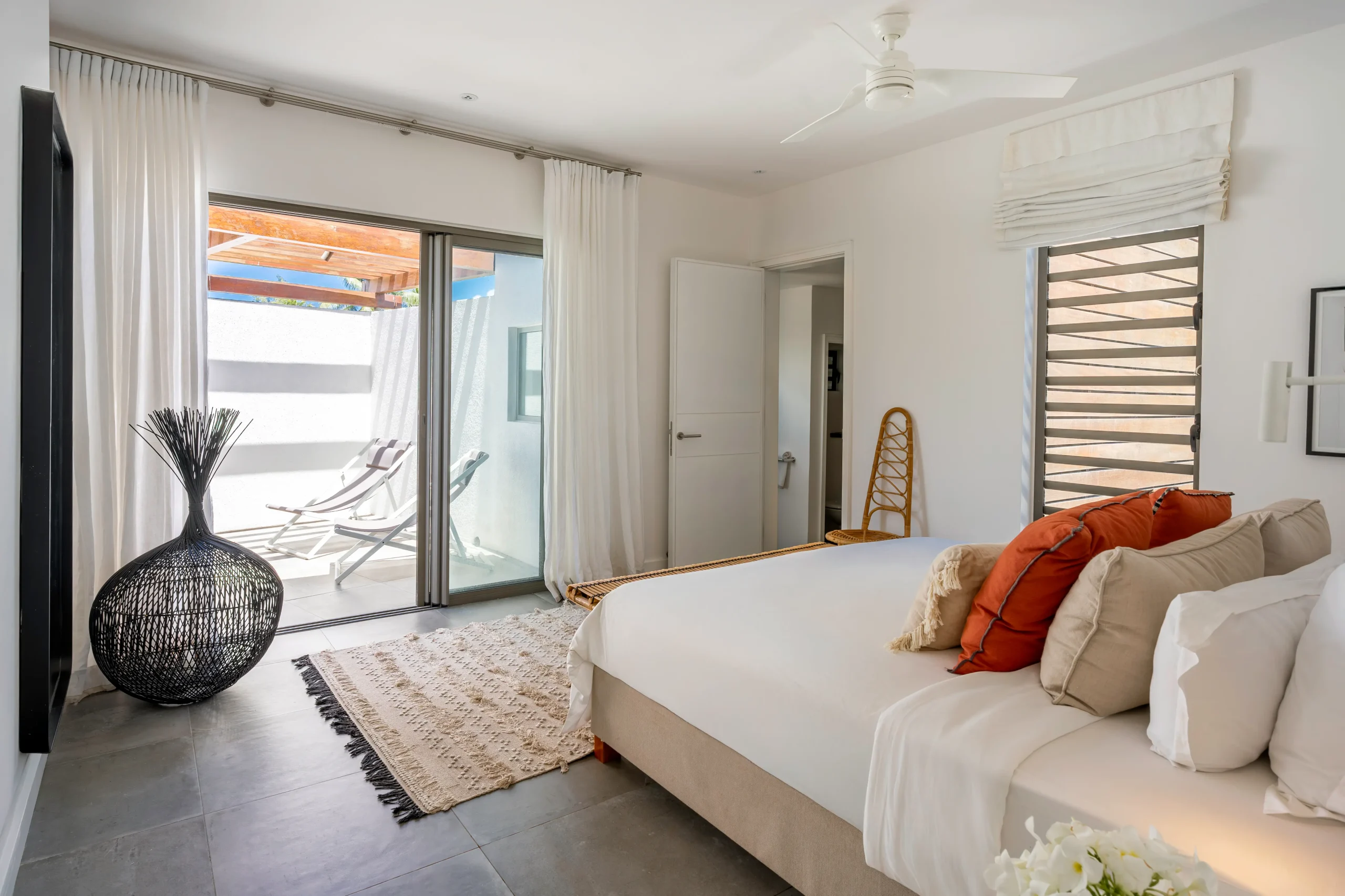 Die Dekoration verbindet moderne Eleganz mit entspannter Inselatmosphäre. Die Villa ist mit viel Liebe zum Detail eingerichtet – mit ausgewählten Stücken aus verschiedenen Teilen der Welt.