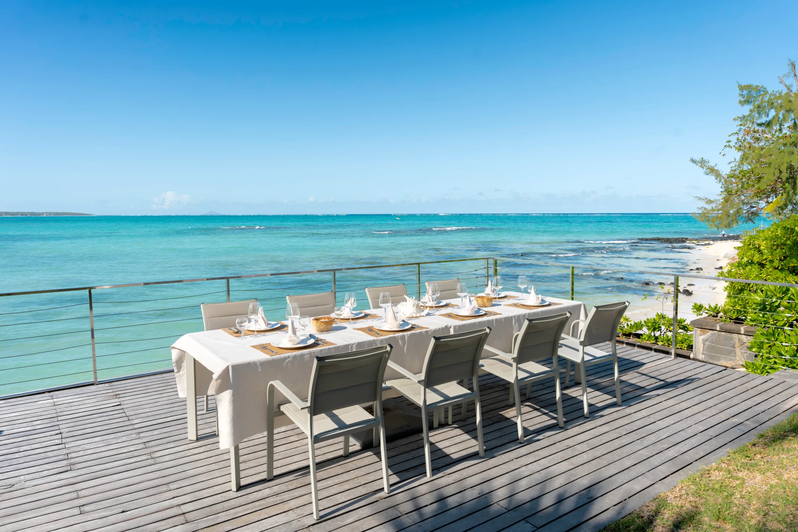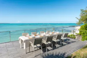 - Ein Traum am Strand – großeHolzterrasse mit Blick auf das kristallklare Wasser von Belle Mare