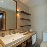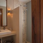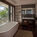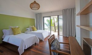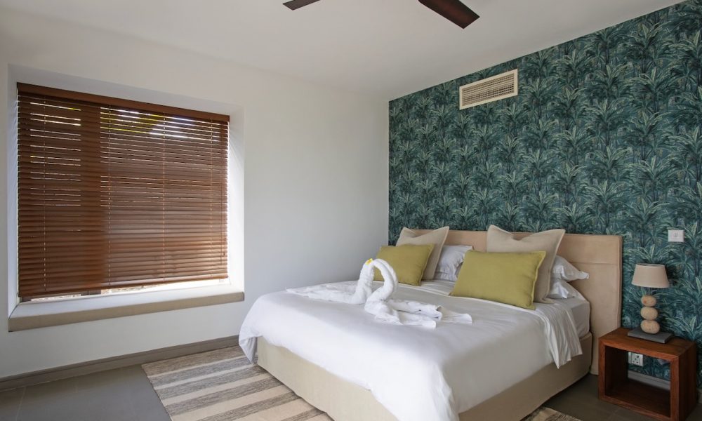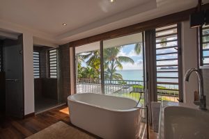 Auf der ersten Etage befindet sich ein Hauptschlafzimmer mit Meerblick und einer Badewanne mit Blick auf das Meer. Ein Kinderzimmer, 2 Betten (1x 140cm und 1x 90cm).