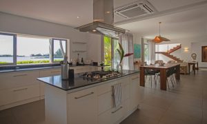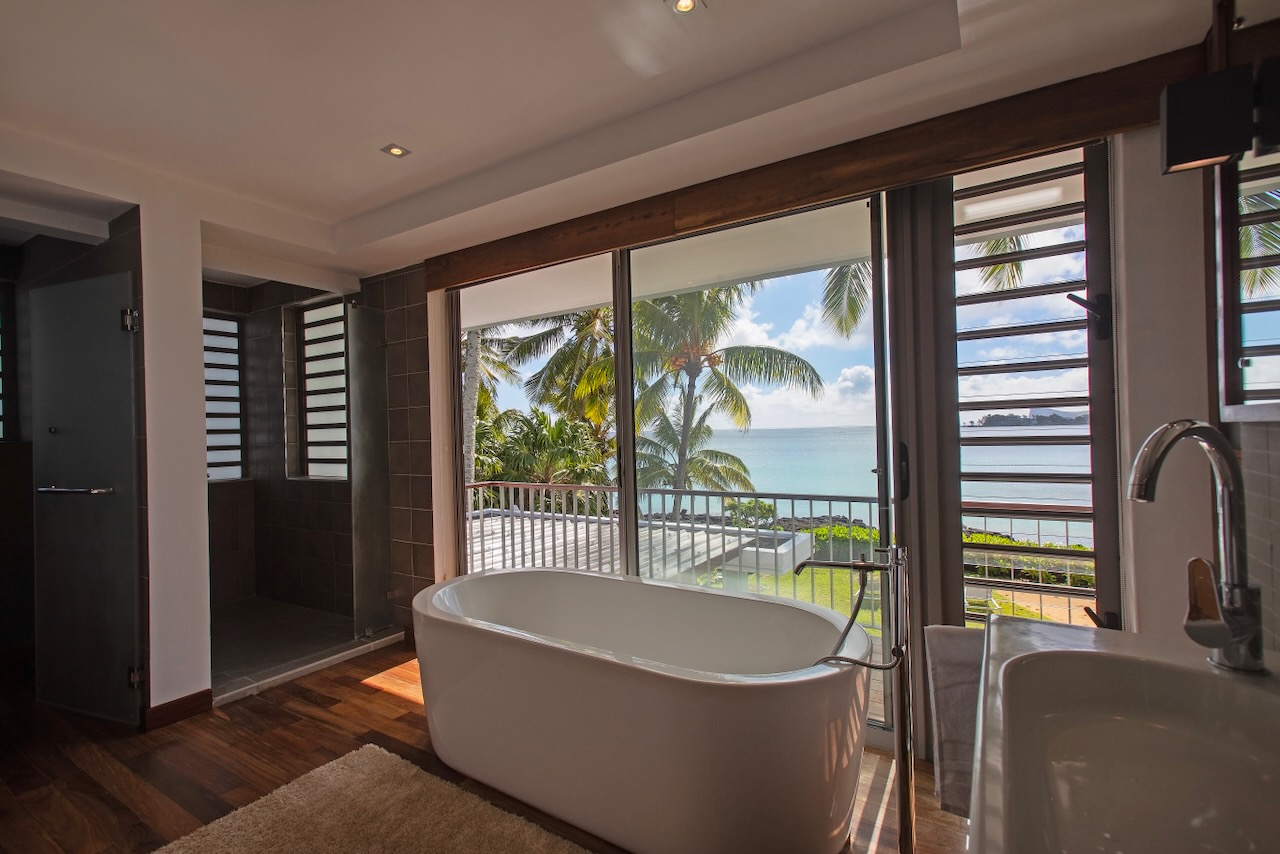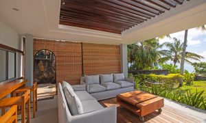 Öffnen Sie die großen Schiebetüren und lassen Sie die Meeresbrise herein. Entspannen Sie sich in der bequem eingerichteten Sitzecke oder genießen Sie ihr frisch gegrilltes Essen auf der überdachten Veranda mit einem Meerblick, der seinesgleichen sucht.